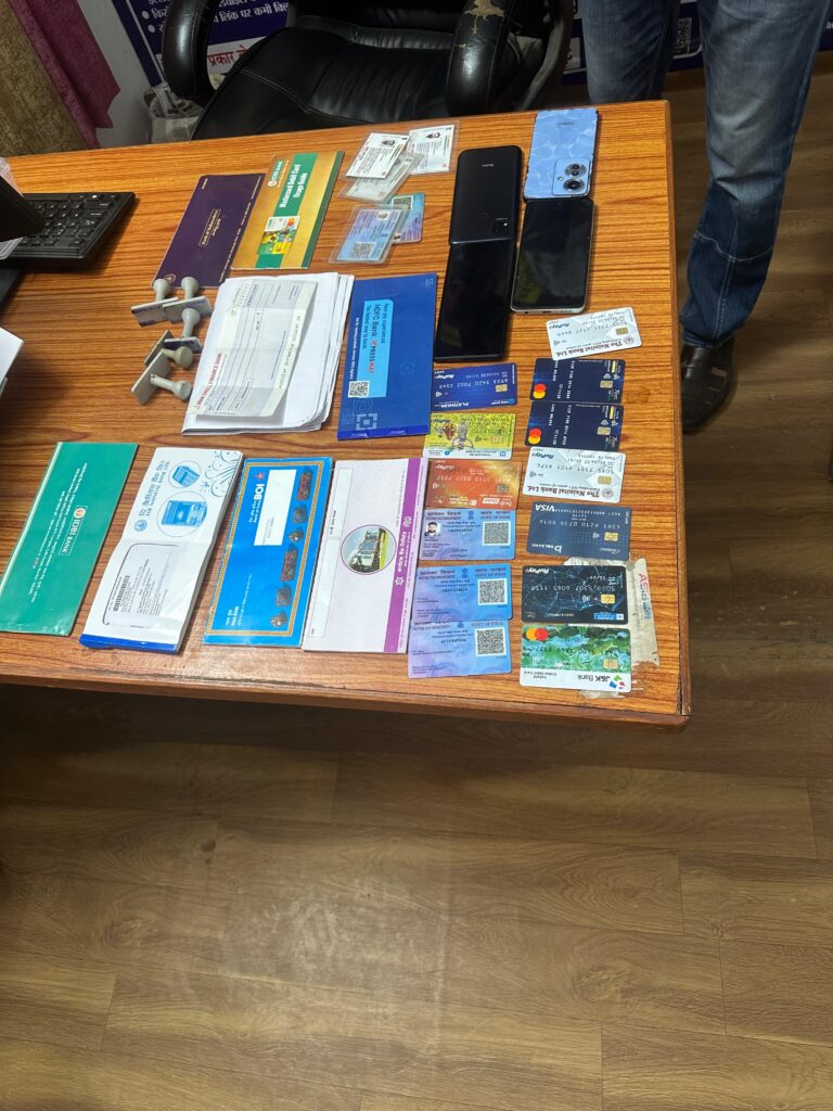 एक स्विफ्ट कार, कई बैंक पासबुक, चेकबुक, डेबिट कार्ड, मोबाइल फोन, पैन और आधार कार्ड समेत फर्जी फर्मों की मुहरें बरामद की गई हैं।