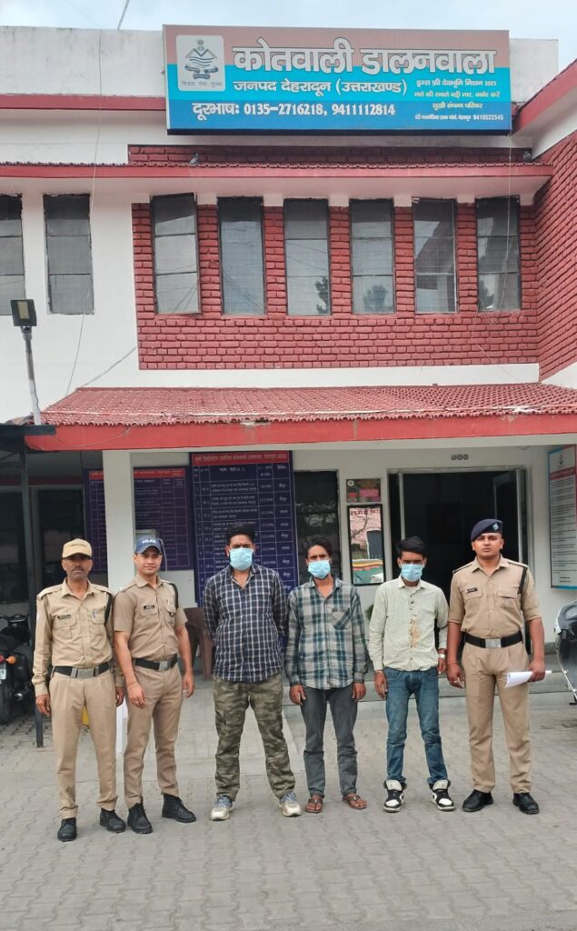 डोईवाला क्षेत्र में पुलिस ने 3 नशा तस्करों को गिरफ्तार किया। इनके पास से अवैध चरस और देशी शराब बरामद की गई।