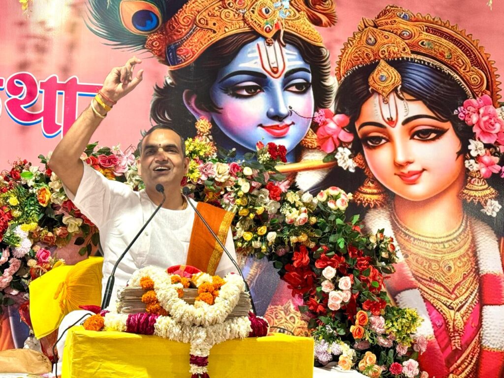 कथा स्थल पर दिनभर भक्ति रस की धारा बहती रही। “हरि बोल” और “राधे-राधे” के जयघोष से पूरा पंडाल गूंज उठा, जिससे वातावरण पूरी तरह भक्तिमय हो गया।