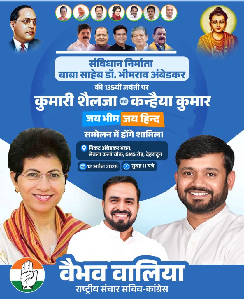 यह कार्यक्रम 12 अप्रैल को प्रातः 11 बजे देहरादून स्थित अंबेडकर भवन (सेवला कला चौक, जीएमएस रोड के निकट) में आयोजित किया जाएगा, जिसमें बड़ी संख्या में युवा, सामाजिक कार्यकर्ता और कांग्रेस कार्यकर्ता भाग लेंगे।