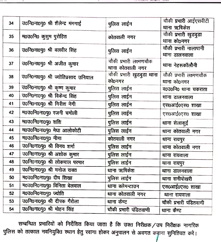 देहरादून पुलिस में बड़ा प्रशासनिक फेरबदल, कई निरीक्षक-उप निरीक्षक ट्रांसफर