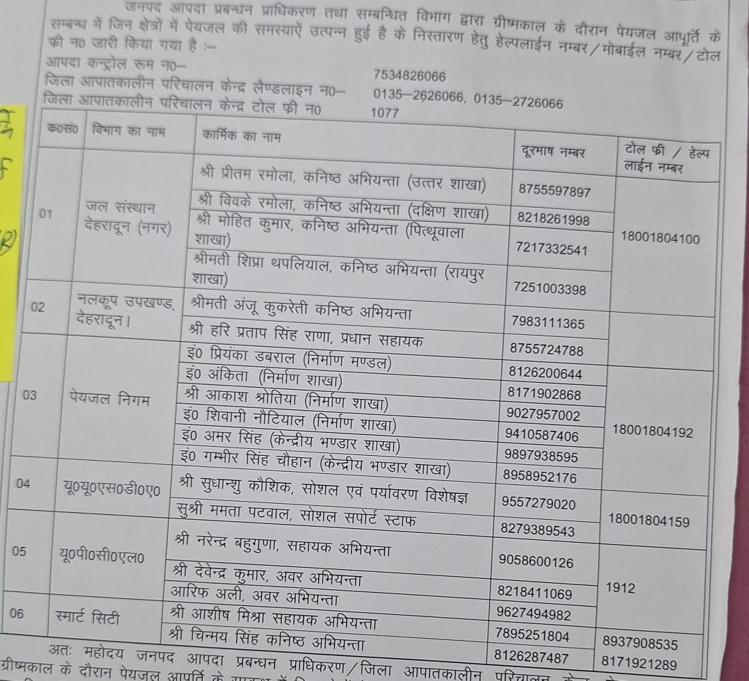 मा0 मुख्यमंत्री के जनसेवा संकल्प के तहत गर्मियों में पेयजल और विद्युत आपूर्ति सुचारू बनाए रखने के लिए जिला प्रशासन तत्परता से जुटा है। जिलाधिकारी सविन बंसल के निर्देशों पर समाचार पत्रों एवं अन्य माध्यमों से प्राप्त हो रही शिकायत और समस्याओं का प्राथमिकता पर समाधान किया जा रहा है।