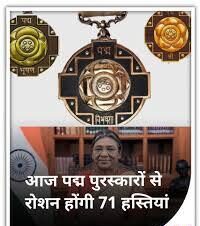 राष्ट्रपति भवन में राष्ट्रपति द्रौपदी मुर्मू ने पद्म पुरस्कार विजेताओं को पुरस्कार प्रदान किए हैं। बता दें कि, देश के सर्वोच्च नागरिक सम्मानों में से एक पद्म पुरस्कार तीन श्रेणियों – पद्म श्री, पद्म भूषण और पद्म विभूषण में प्रदान किए जाते हैं। ये पुरस्कार कई विषयों जैसे कला, सामाजिक कार्य, सार्वजनिक मामले, विज्ञान और इंजीनियरिंग, व्यापार और उद्योग, चिकित्सा और साहित्य आदि में दिए जाते हैं।