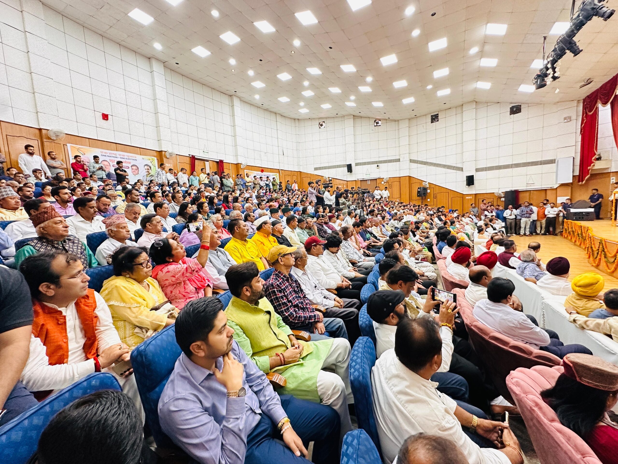 उन्होंने कहा कि प्रधानमंत्री श्री नरेंद्र मोदी जी का लगभग 11 वर्षों का कार्यकाल ऐतिहासिक उपलब्धियों से भरा रहा है। प्रधानमंत्री श्री नरेंद्र मोदी जी ने नेतृत्व में पिछले एक दशक में जहां एक ओर देश में विकास और आर्थिक प्रगति के नए प्रतिमान स्थापित हुए, वहीं अनेकों ऐतिहासिक निर्णयों के माध्यम से भारत के लोकतंत्र को और भी अधिक मज़बूती मिली। चाहे जीएसटी लागू करना हो, तीन तलाक़ की समाप्ति हो,कश्मीर से धारा 370 खत्म करना हो, सीएए-एनआरसी का क़ानून बनाना हो, नारीशक्ति वंदन अधिनियम पारित करना हो या फिर भारतीय न्याय संहिता, भारतीय नागरिक सुरक्षा संहिता और भारतीय साक्ष्य अधिनियम को लागू करना हो। इन सभी ऐतिहासिक निर्णयों ने भारत को एक नई दिशा दी है। मुख्यमंत्री ने कहा कि एक बार में चुनाव होने से वोटिंग टर्नआउट में भी बढ़ोत्तरी देखने को मिलेगी, क्योंकि बहुत सारे लोग जो दूसरे राज्यों में रहते हैं वो बार-बार वोट देने के लिए अपने गृह राज्य में जाने से कतराते हैं लेकिन जब तीनों स्तर के चुनाव एक साथ होंगे तो वो वोट देने अवश्य जाएँगे। अब समय आ गया है कि हम आधुनिक तकनीक, चुनाव आयोग की पारदर्शिता और जनता के सहयोग से इस संतुलन को पुनः स्थापित करें | मुख्यमंत्री ने कहा कि जब अमेरिका, जापान, ब्राज़ील और स्वीडन जैसे देशों में एक साथ चुनाव की व्यवस्था हो सकती है तो क्या भारत जैसे विश्व के सबसे बड़े लोकतांत्रिक देश में ये व्यवस्था नहीं हो सकती? आदरणीय प्रधानमंत्री श्री मोदी जी जैसे दृढ़ और संकल्पित प्रधान सेवक हमारे पास हैं तो देश हित का कोई काम रुक जाए, ऐसा हो नहीं सकता| । मुख्यमंत्री ने कहा कि उनको पूर्ण विश्वास है कि एक दिन ये एक राष्ट्र-एक चुनाव की व्यवस्था भारत में अवश्य लागू होगी और यह कानून भारत में लोकतंत्र को और अधिक मज़बूत करने में सहायक सिद्ध होगा। उन्होंने कहा की एक राष्ट्र एक चुनाव हर तरह से देश हित में है | इसके सम्बन्ध में व्यापक जन जागरूकता की आवश्यकता है |