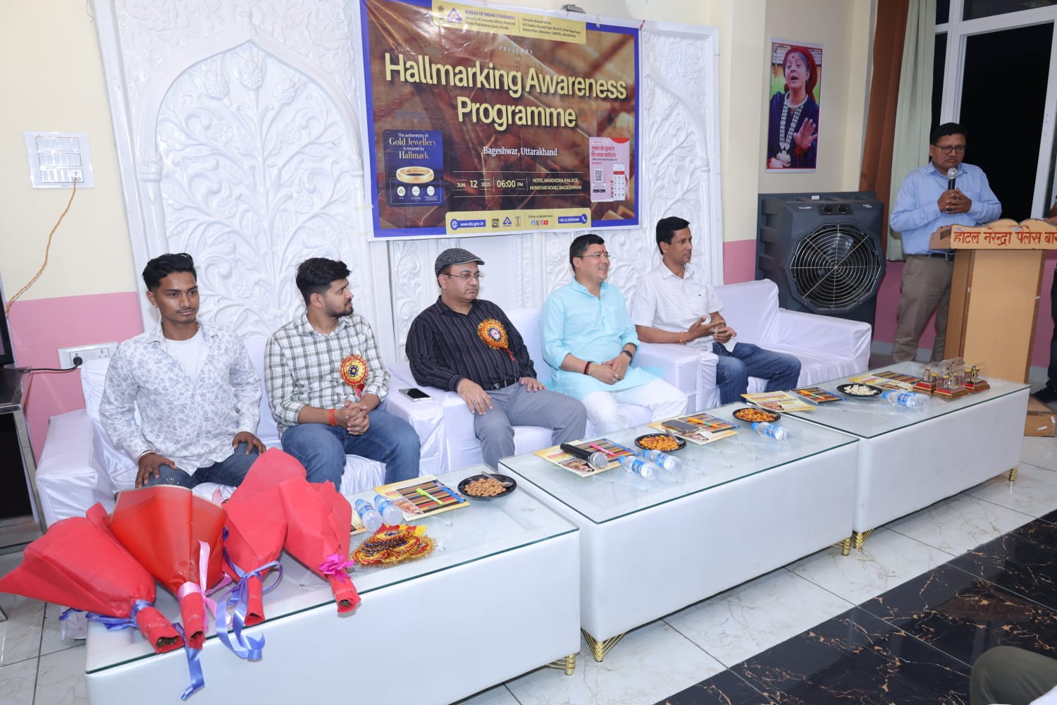 बागेश्वर 12 जून 2025 – भारतीय मानक ब्यूरो (BIS), देहरादून शाखा द्वारा ज्वैलर्स जागरूकता कार्यक्रम का आयोजन होटल नरेंद्र पैलेस बागेश्वर में किया गया। इस कार्यक्रम का उद्देश्य स्थानीय स्वर्णकारों को हॉलमार्किंग, गुणवत्ता मानकों और अनुपालन प्रक्रियाओं के नवीनतम विकास के बारे में जागरूक करना था।