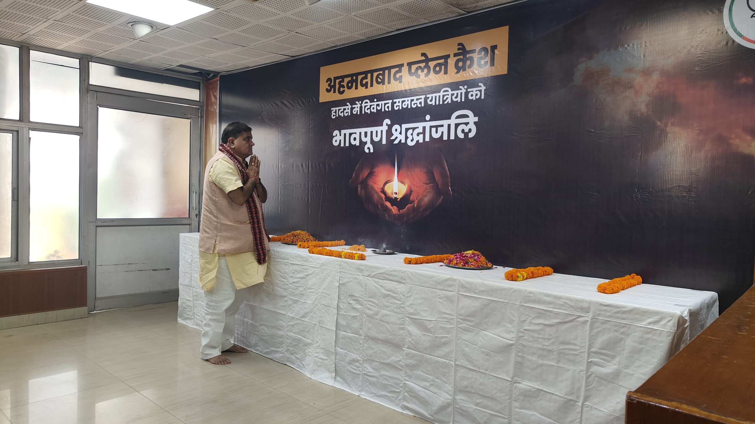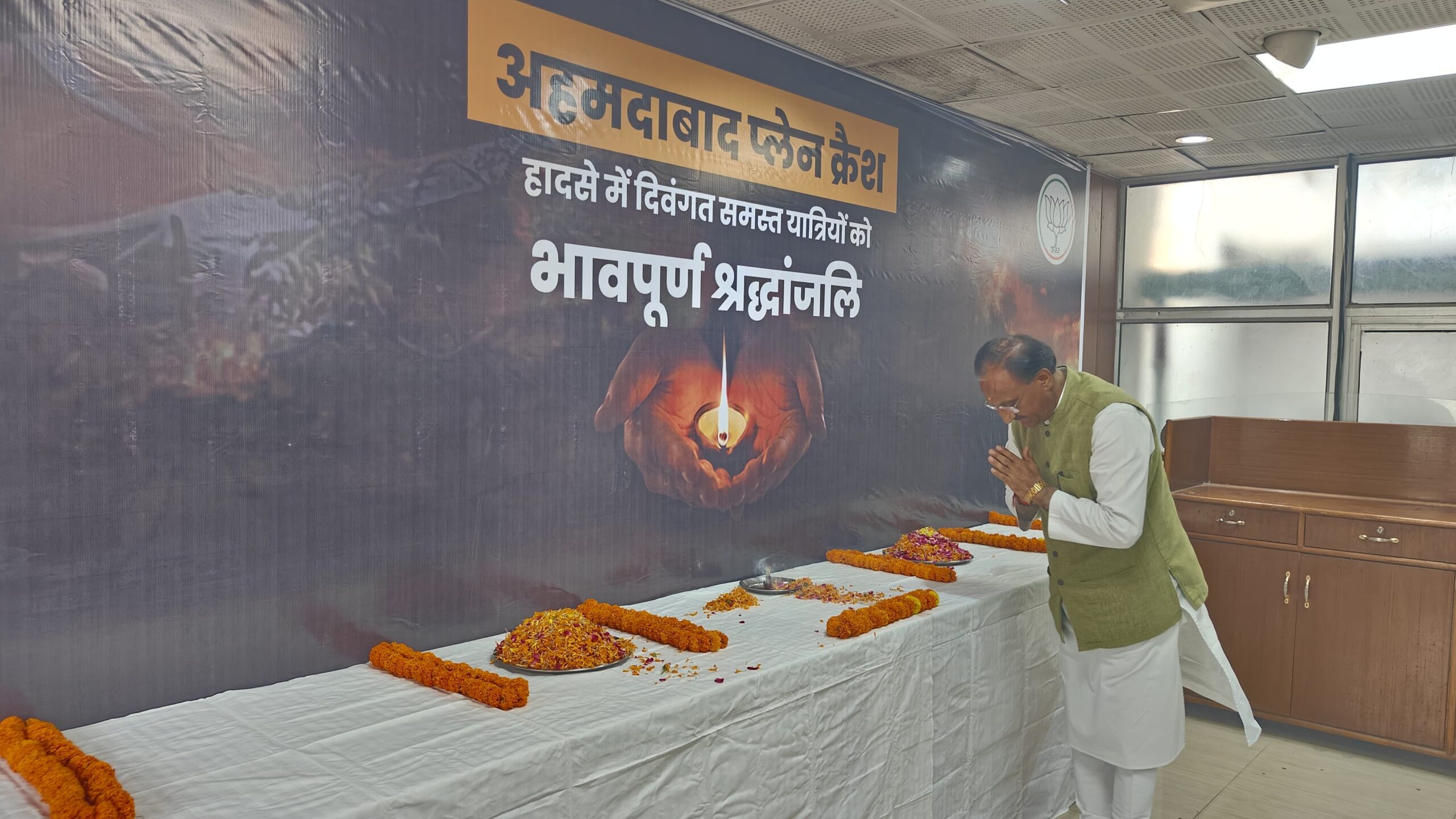 इस संदर्भ में बलबीर रोड स्थित पार्टी मुख्यालय में शोक सभा का आयोजन किया गया। जिसमें पार्टी राष्ट्रीय महामंत्री एवं प्रदेश प्रभारी श्री दुष्यंत कुमार गौतम और प्रदेशाध्यक्ष एवं राज्यसभा सांसद श्री महेंद्र भट्ट के नेतृत्व में कार्यकर्ताओं ने पुष्प अर्पित करते हुए अपनी मौन श्रद्धांजलि दी। श्रद्धांजलि देते हुए श्री दुष्यंत कुमार गौतम से कहा, जब से अहमदाबाद से लंदन जाने वाले विमान क्रैश हुआ, तब से देश में शोक की लहर व्याप्त है। देश ही नहीं विश्व के भी लोगों ने उसमें जान गंवाई है, उससे चारो और शोकाकुल वातावरण है। अपनी हवाई यात्रा का जिक्र करते हुए कहा, आज एयरपोर्ट में यात्री तो थे लेकिन वह चहल-पहल और आपसी चर्चा नहीं दिखाई जो अमूमन नजर आती थी। कल के दुखद हादसे में हमने जिनको भी खोया, उनका सामाजिक आर्थिक व्यवहारिक योगदान महत्वपूर्ण था। भाजपा परिवार ने भी इस दुर्घटना में अपने बहुत ही वरिष्ठ नेता एवं गुजरात के पूर्व मुख्यमंत्री श्री विजय रुपाणी को खोया है।