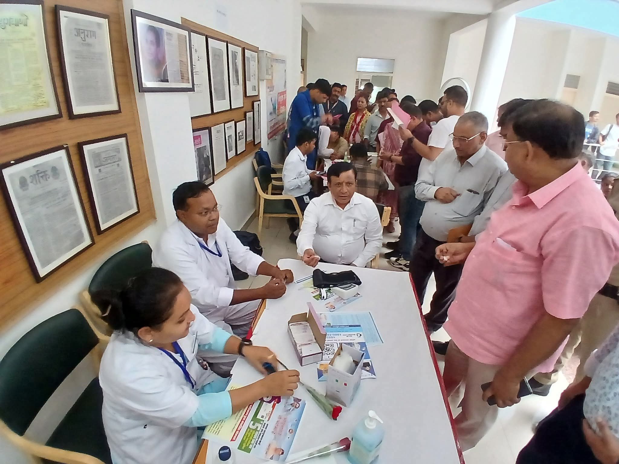 सहित पैरामेडिकल स्टाफ भी शामिल हुआ। डॉ आशुतोष सयाना ने बताया कि कैम्प में 350 से अधिक पत्रकारों और उनके परिजनों की जांच की गई। शिविर में आभा आईडी के साथ ही वय वंदन कार्ड भी बनाए गए। उन्होंने बताया कि कई ऐसे मामले भी सामने आए, जिसमें पत्रकारों को जांच के बाद ही पहली बार शुगर, बीपी, दृष्टि दोष जैसे समस्याओं का पता चला, इसके लिए उन्हें परामर्श,दवाई भी दिए गए।