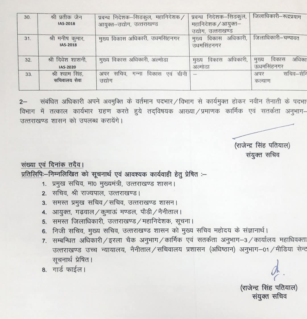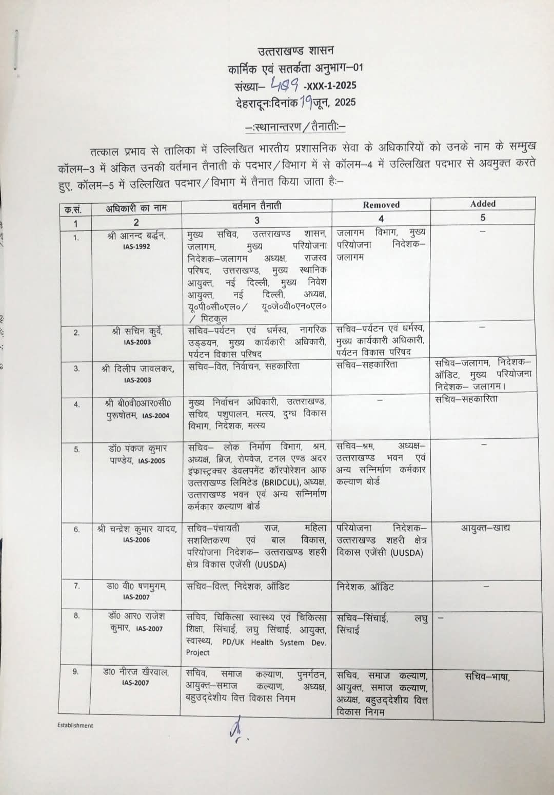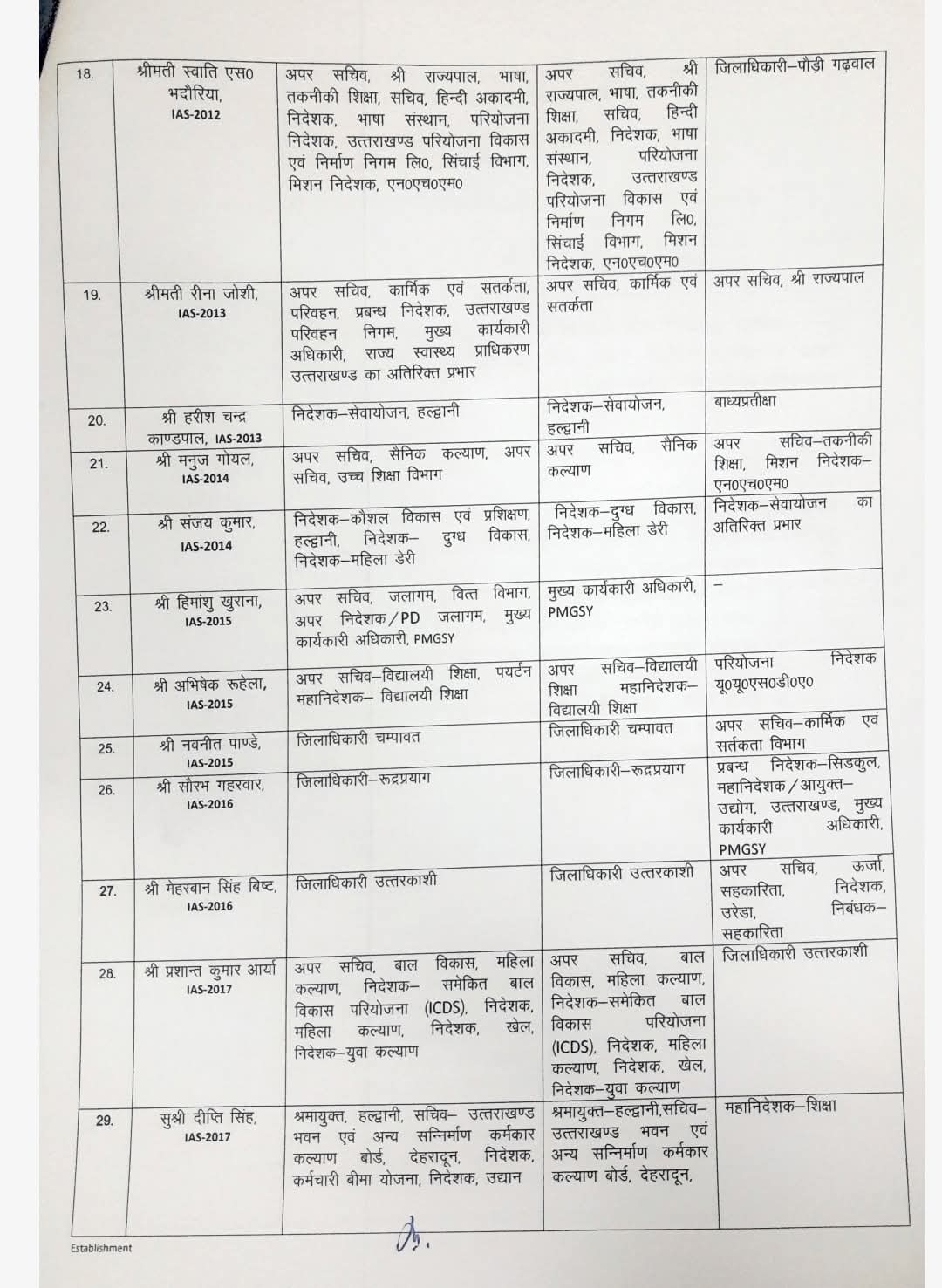 उत्तराखंड में कई IAS और PCS के बम्पर स्थानांतरण, देखें पूरी सूची