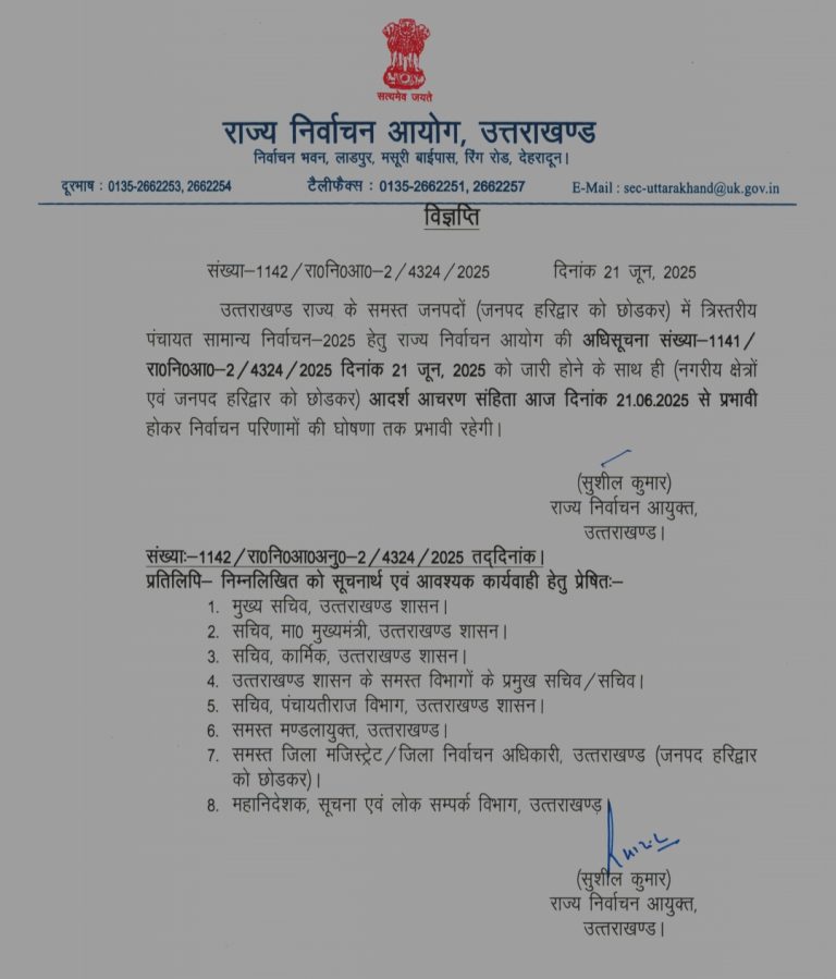उत्तराखंड में त्रिस्तरीय पंचायत चुनाव को लेकर अधिसूचना जारी