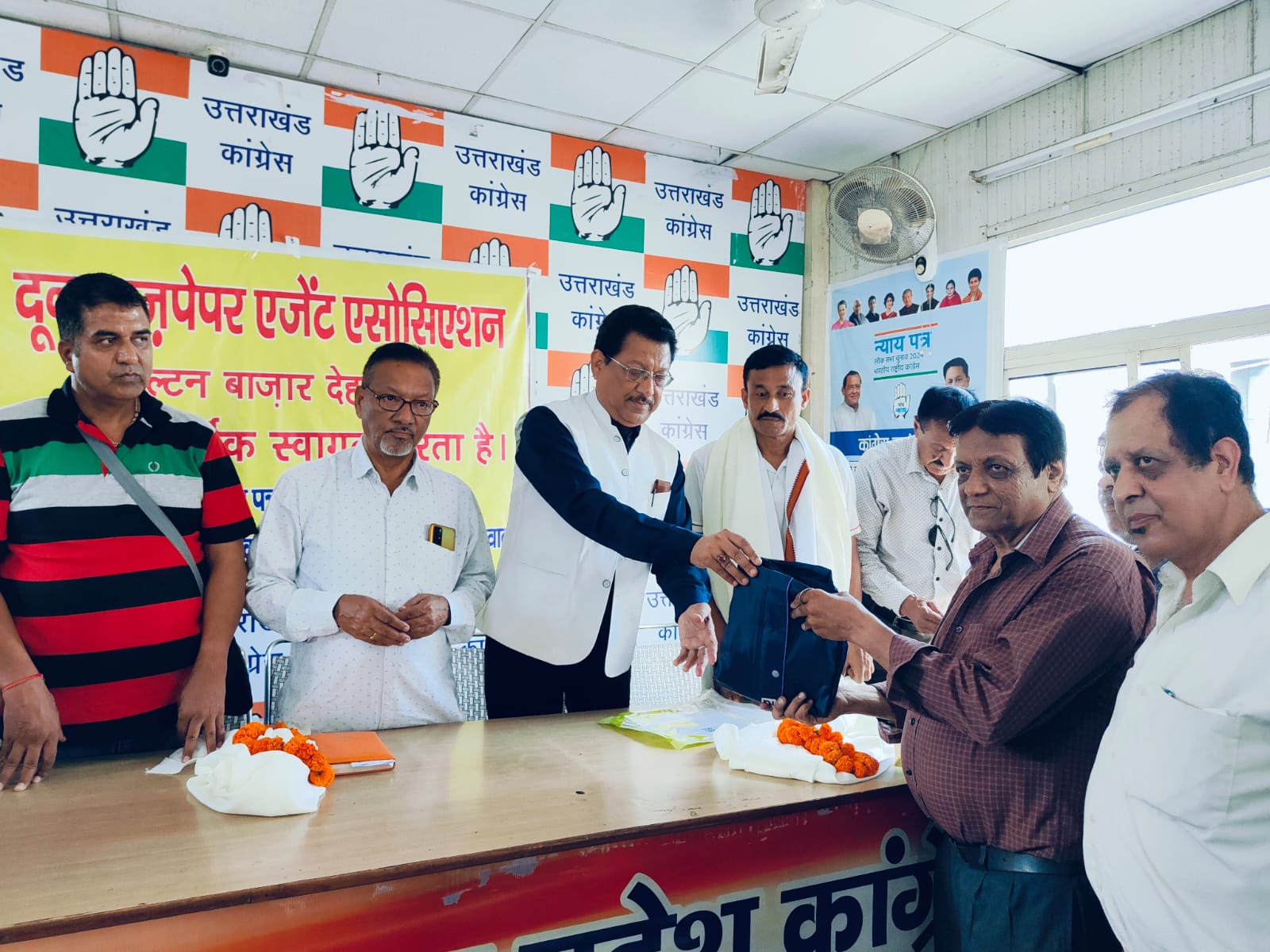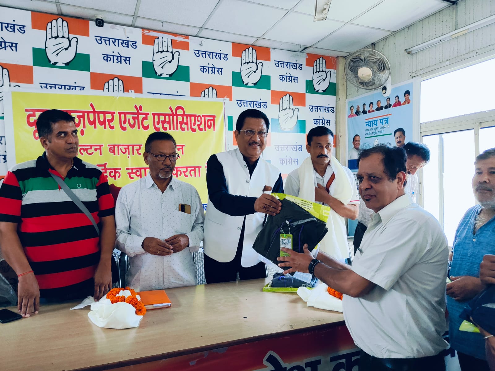 न्यूज पेपर हॉकर्स एसोशिएशन के अध्यक्ष ललित जोशी ने सभी हॉकर्स की ओर से श्री धस्माना का आभार व्यक्त करते हुए कहा कि न्यूज पेपर एजेंट्स एसोशिएशन ने जब भी किसी संकट की घड़ी में श्री धस्माना को याद किया उन्होंने हमेशा हमारी सहायता की। उपाध्यक्ष श्री प्रदीप रतूड़ी ने कहा कि कोविड काल में जब सरकार और शासन प्रशाशन ने तथा सत्ता धारी दल ने हॉकर्स को किसी प्रकार की सहायता प्रदान नहीं की तब दो दो बार सभी हॉकर्स को राशन की किट व सर्दियों में सभी हॉकर्स को गरम कंबल भेंट करने का काम श्री धस्माना ने किया। इस अवसर पर न्यूज पेपर एजेंट्स एसोशिएशन के सरदार हरप्रीत सिंह, कैलाश सेमवाल,राजेश कुमार भट्ट, राकेश शर्मा आदि पदाधिकारी उपस्थित रहे। श्री धस्माना ने दो सौ सैंतीस न्यूज पेपर हॉकर्स को रेनकोट भेंट किए।