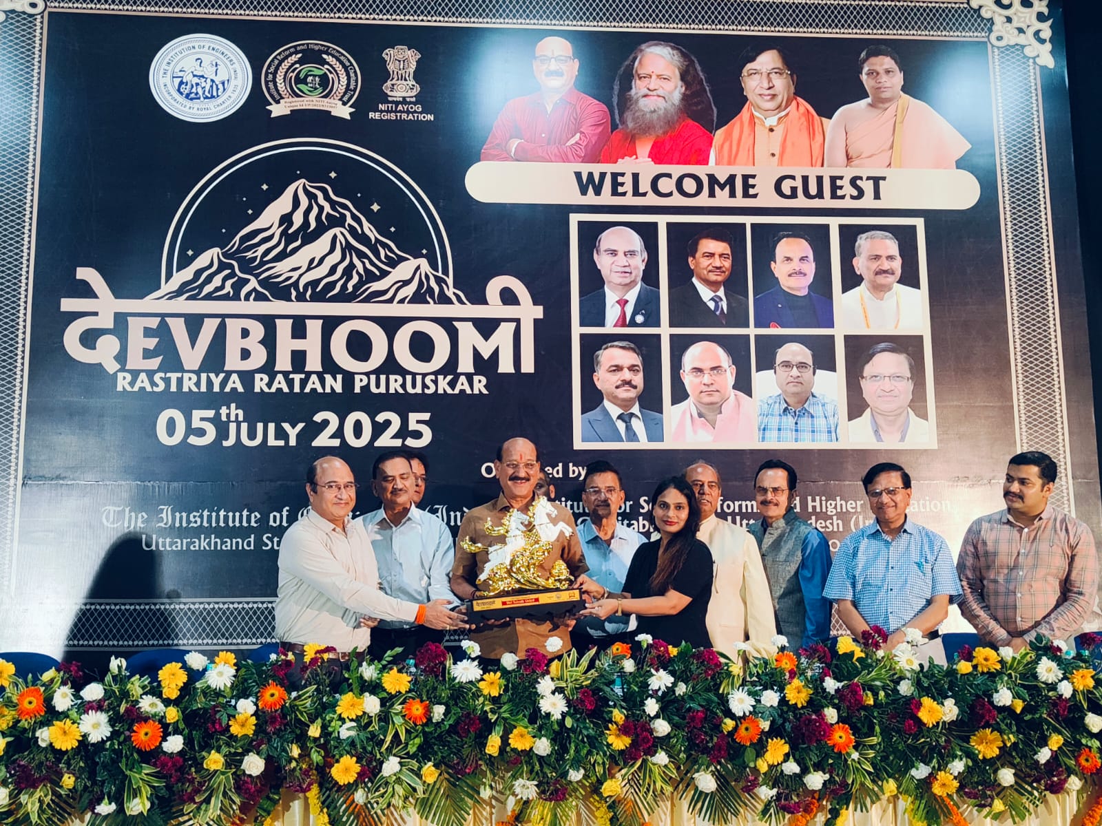देहरादून- 05 जुलाई 2025 – देवभूमि राष्ट्रीय रत्न पुरस्कार – 2025 का आयोजन इंस्टीट्यूशन ऑफ इंजीनियर्स (इंडिया), उत्तराखंड स्टेट सेंटर, देहरादून में भव्यता के साथ संपन्न हुआ।