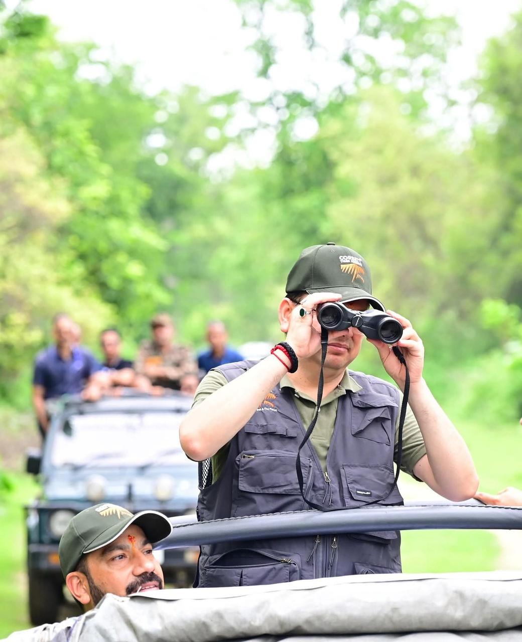 उत्तराखंड के मुख्यमंत्री पुष्कर सिंह धामी हाल ही में जंगल सफारी पर गए, जहाँ वह दूरबीन से जंगल का नज़ारा देख रहे थे।