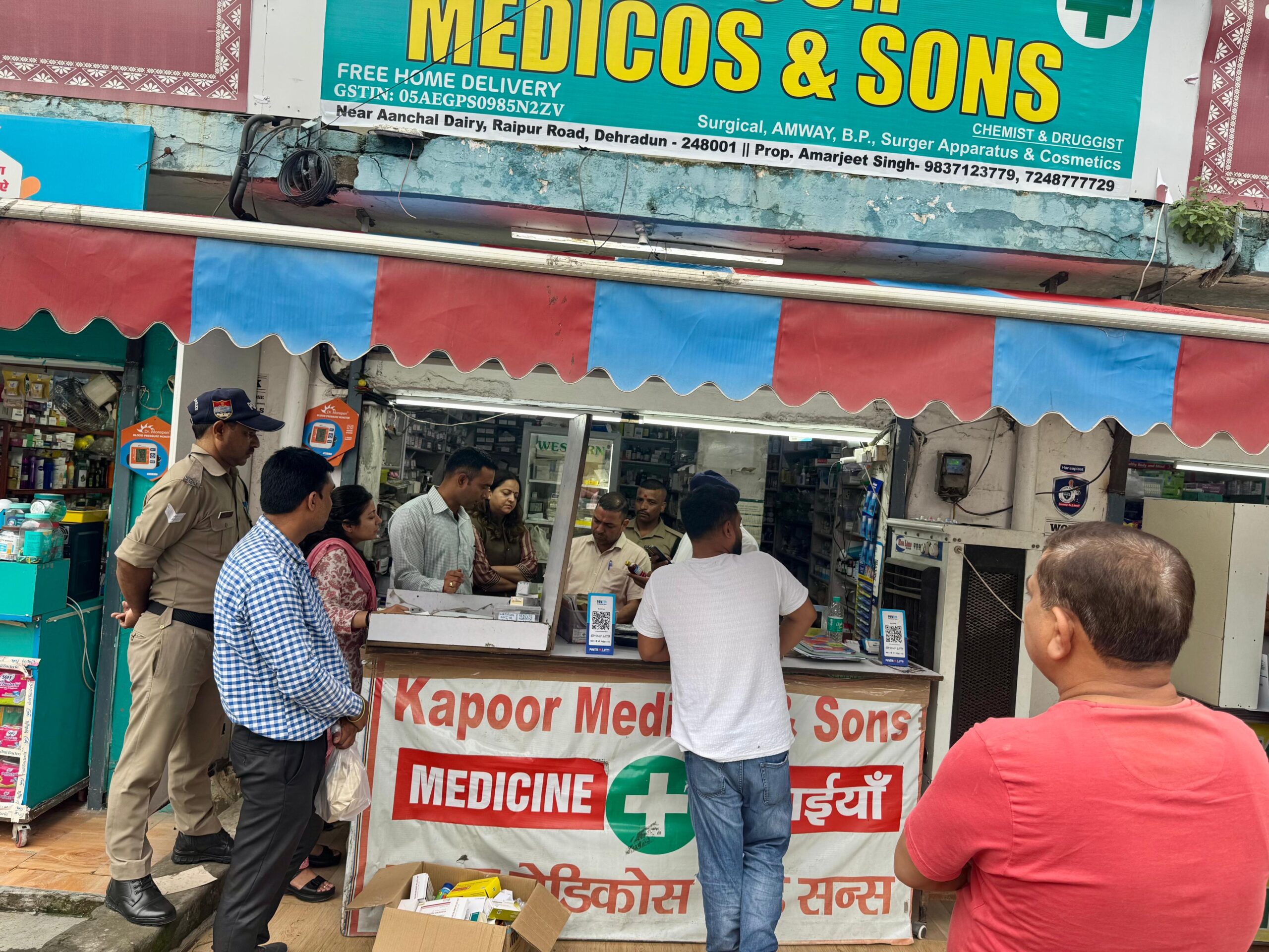 कपूर मेडिकोज, रायपुर रोड, देहरादून प्रो० गुरुशरण सिंह और 01 फॉर्मासिस्ट निरीक्षण के दौरान अनुपस्थित पाये गए। मेडिकल स्टोर के निरीक्षण में फिज में तापमान डिस्प्ले नहीं पाया गया। फिज में एक्सपायर इंसुलिन दवाई पायी गयी। नारकोटिक्स दवाईयों का भी कय-विक्रय किया जाता है, जिनके बिलों की जांच में अनियमितताएं पायी गयी। मेडिकल स्टोर में दवाईयां एक्सपायर पायी गयी एवं स्टोर में गंदगी और धूल पायी गयी। उक्त स्टोर पर कार्यवाही करते हुए औषधि निरीक्षक ड्रग एडमिनिस्ट्रेशन द्वारा एक्सपायर दवाईयों को जब्त किया गया और इनके कय-विक्रय पर रोक लगाते हुए चेतावनी के साथ स्पष्टीकरण के लिए कार्यालय में उपस्थित होने के निर्देश दिये गए। उक्त स्टोर में अनियमितता के मद्देनजर उसी समय बंद करवाया गया।