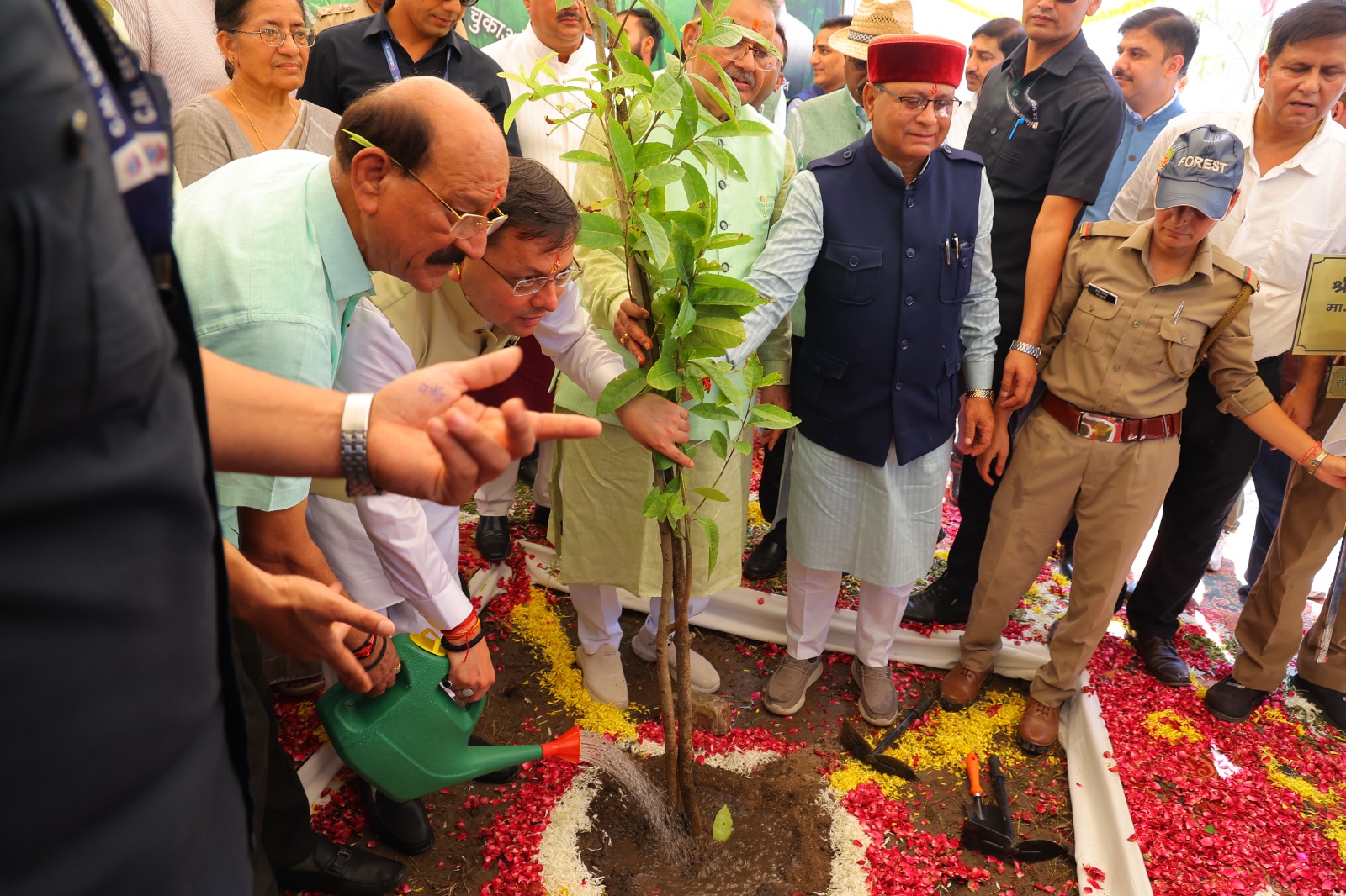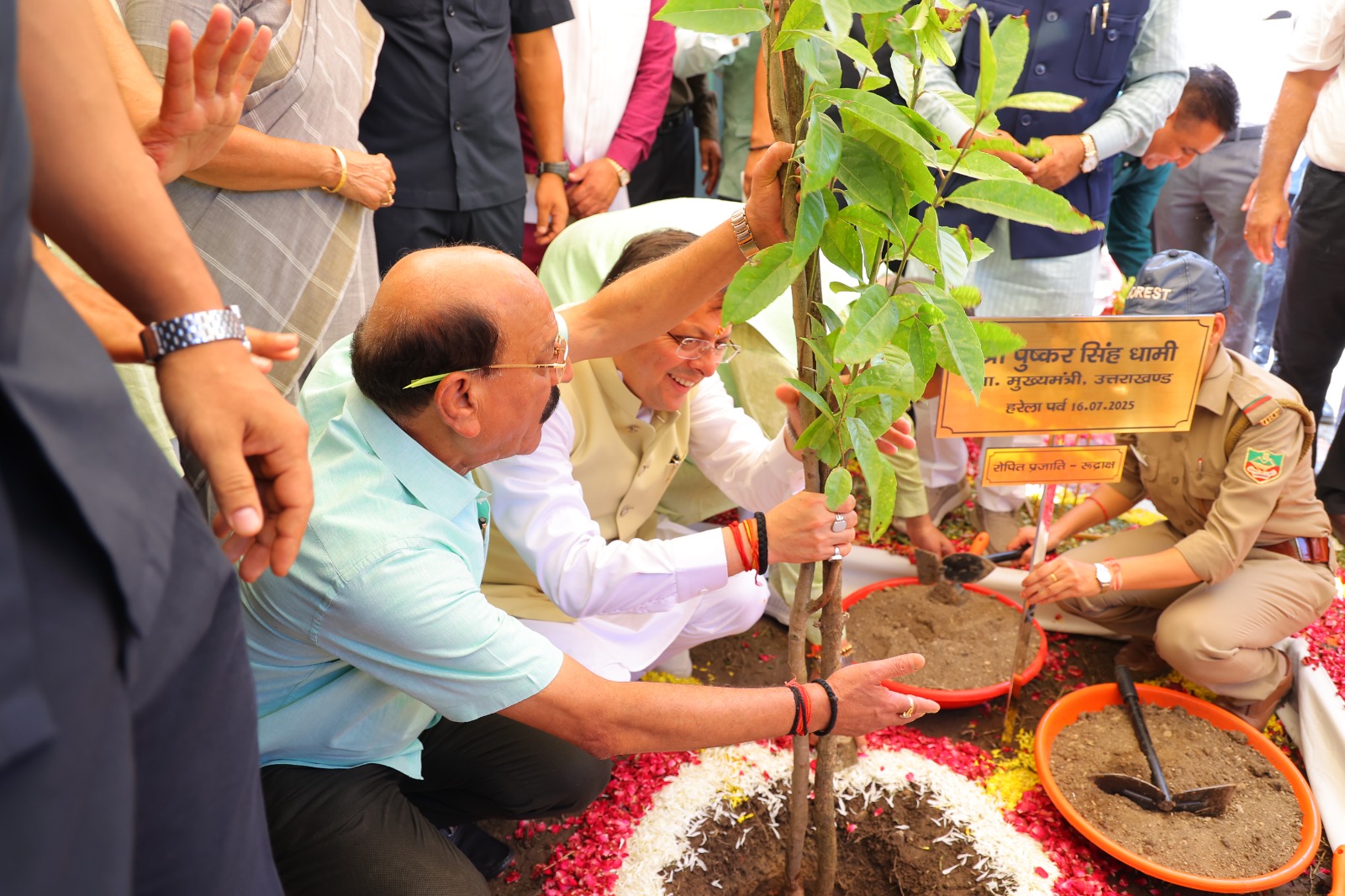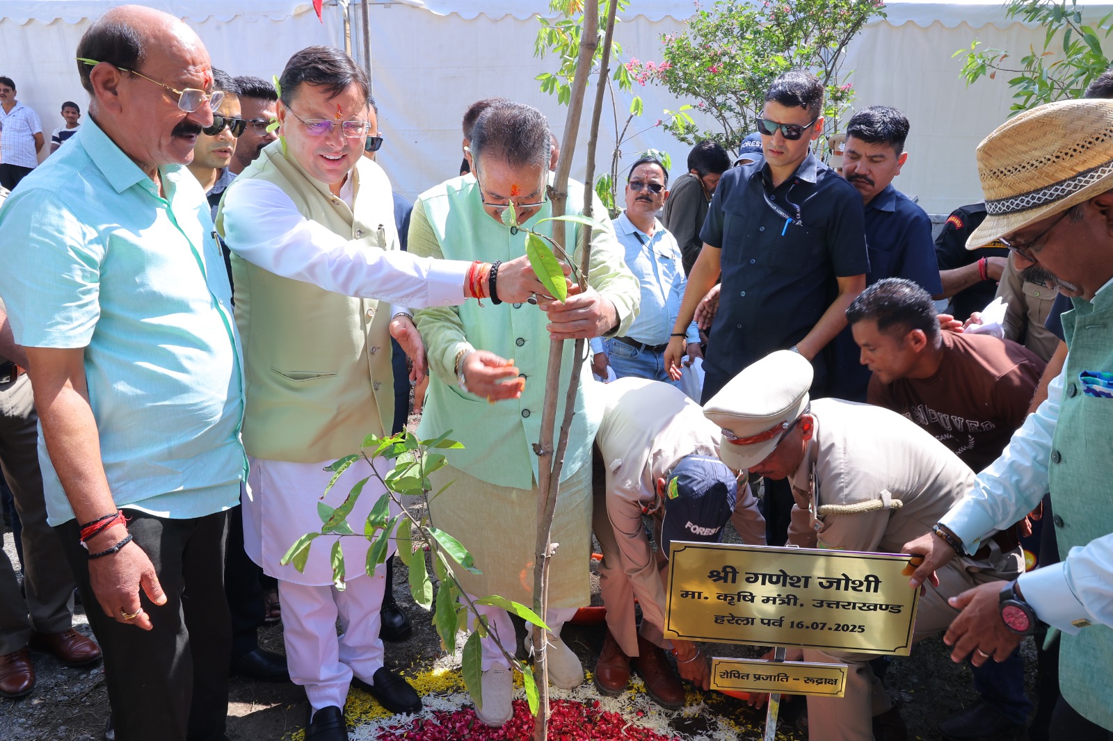 कार्यक्रम का शुभारंभ माननीय मुख्यमंत्री श्री पुष्कर सिंह धामी जी द्वारा विधिवत पूजन के उपरांत आदरणीय प्रधानमंत्री जी द्वारा शुरू किए गए “एक पेड़ माँ के नाम” और “हरेला का त्योहार मनाओ, धरती माँ का ऋण चुकाओ” अभियान के तहत रुद्राक्ष का पौधा लगाकर पौधारोपण किया गया । इस अवसर पर उन्होंने उत्तराखंड की हरित सांस्कृतिक विरासत, प्रकृति प्रेम, और पर्यावरण संरक्षण के प्रति राज्य की गहरी प्रतिबद्धता को दोहराया , इसके पश्चात वन विभाग और विभिन्न स्वयं सहायता समूहों द्वारा लगाए गए स्टॉलों का भी अवलोकन कियाI माननीय मुख्यमंत्री जी के साथ-साथ माननीय वन मंत्री जी, विधायकगण’ उपस्थित गणमान्यों तथा अन्य अधिकारीयों व स्कूलों के बच्चों के द्वारा भी पौधरोपण में बढ़चढ कर भाग लिया गया I माननीय मुख्यमंत्री जी द्वारा दिए गए वक्तव्य केअनुसार विभिन्न