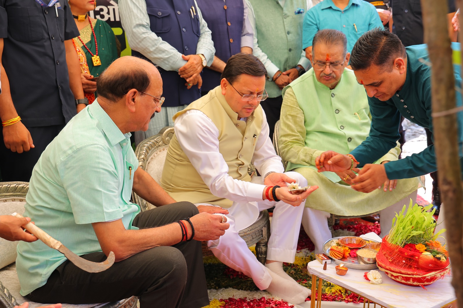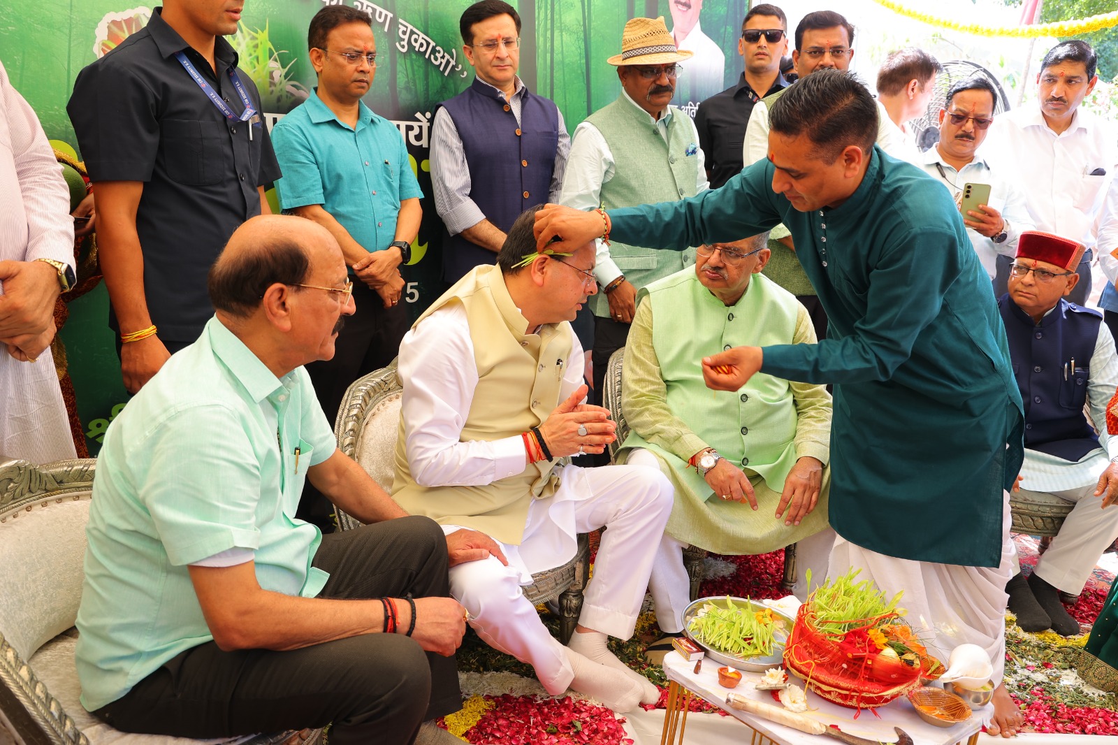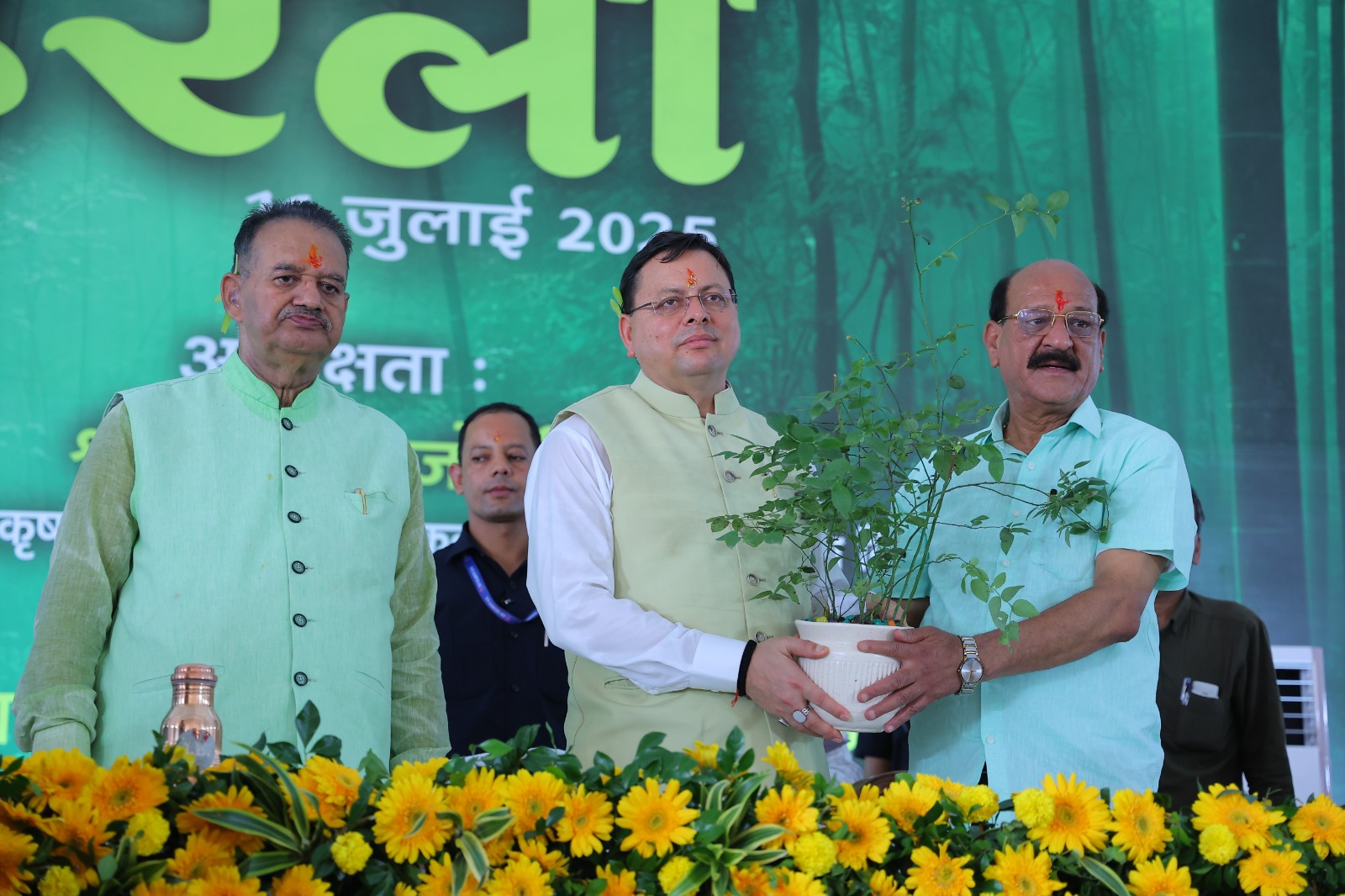 कार्यक्रम का शुभारंभ माननीय मुख्यमंत्री श्री पुष्कर सिंह धामी जी द्वारा विधिवत पूजन के उपरांत आदरणीय प्रधानमंत्री जी द्वारा शुरू किए गए “एक पेड़ माँ के नाम” और “हरेला का त्योहार मनाओ, धरती माँ का ऋण चुकाओ” अभियान के तहत रुद्राक्ष का पौधा लगाकर पौधारोपण किया गया । इस अवसर पर उन्होंने उत्तराखंड की हरित सांस्कृतिक विरासत, प्रकृति प्रेम, और पर्यावरण संरक्षण के प्रति राज्य की गहरी प्रतिबद्धता को दोहराया , इसके पश्चात वन विभाग और विभिन्न स्वयं सहायता समूहों द्वारा लगाए गए स्टॉलों का भी अवलोकन कियाI माननीय मुख्यमंत्री जी के साथ-साथ माननीय वन मंत्री जी, विधायकगण’ उपस्थित गणमान्यों तथा अन्य अधिकारीयों व स्कूलों के बच्चों के द्वारा भी पौधरोपण में बढ़चढ कर भाग लिया गया I माननीय मुख्यमंत्री जी द्वारा दिए गए वक्तव्य केअनुसार विभिन्न
