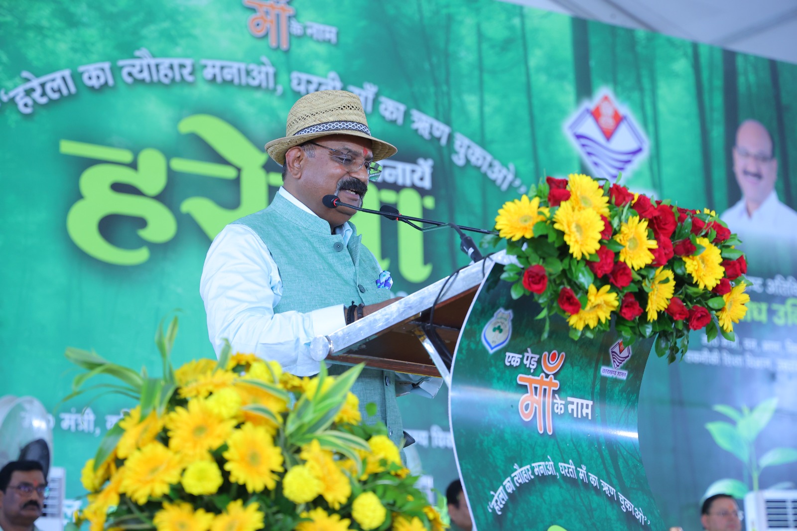 कार्यक्रम के दौरान अपने अभिभाषण में माननीय कैबिनेट मंत्री श्री गणेश जोशी जी के द्वारा ‘हरेला का त्योहार मनाओ, धरती माँ का ऋण चुकाओ’ अभियान में सहभागिता कर पर्यावरण संरक्षण का संकल्प दोहराया।