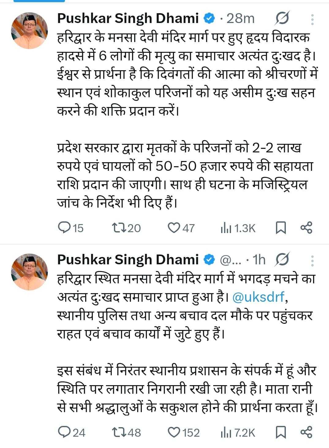 हरिद्वार में मनसा देवी मंदिर मार्ग पर भगदड़, 7 लोगों की मौत, 30 घायल; सीएम ने जताया दुख