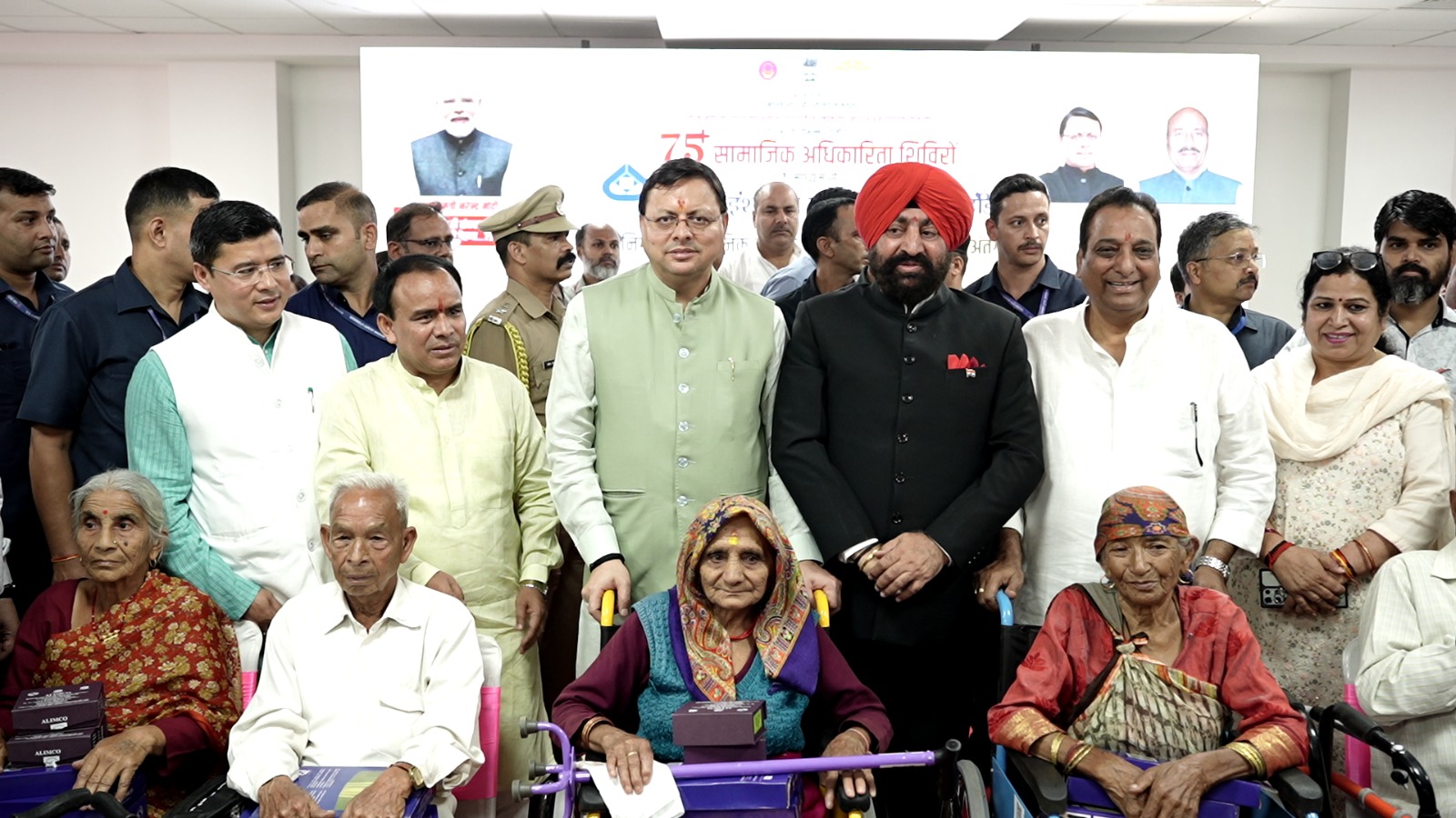 राजधानी देहरादून के दून मेडिकल कॉलेज में आयोजित सेवा पर्व के उपलक्ष में 75 सामाजिक अधिकारिता शिविरों में प्रधानमंत्री नरेन्द्र मोदी जी के सेवा ही संकल्प, राष्ट्र प्रथम ही प्रेरणा को लेकर मुख्यमंत्री पुष्कर सिंह धामी ने भारतीय कृत्रिम अंग निर्माण निगम कानपुर के सहयोग से जनपद देहरादून में माननीय मुख्यमंत्री पुष्कर सिंह धामी द्वारा 360 वरिष्ठ नागरिकों को 2402 सहायक उपकरणों का निशुल्क वितरण किया। कार्यक्रम के दौरान मुख्यमंत्री पुष्कर सिंह धामी ने 60 वर्ष से अधिक आयु वाले वृद्धजनों से सीधा संवाद किया। साथ ही उनकी समस्याओं को भी जाना।