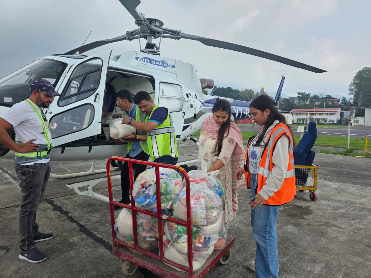 दैवीय आपदा प्रभावित छमरौली गांव, हैली से पहुंचाए गए 300 फूड पैकेट।