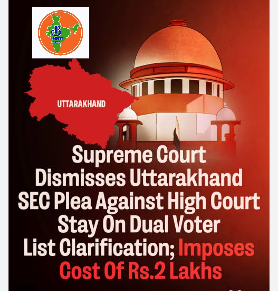 उत्तराखंड राज्य चुनाव आयोग पर सुप्रीम कोर्ट ने लगाया 2 लाख का हर्जाना,“डबल वोटर – डबल खेल” पर सुप्रीम कोर्ट का हंटर – कांग्रेस
