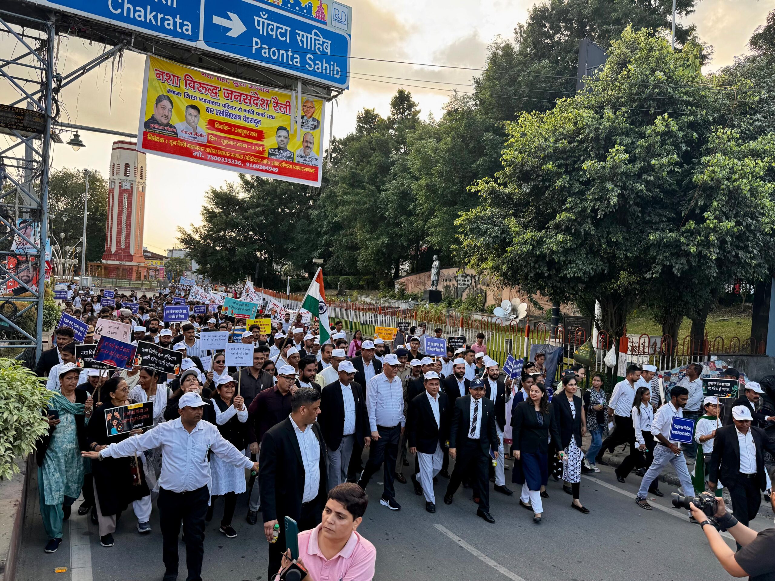 माननीय न्यायमूर्ति श्री मनोज कुमार तिवारी जी की गरिमामयी उपस्थिति में आज दिनांक 03/10/2025 को जिला विधिक सेवा प्राधिकरण देहरादून व बार एसोसिएशन देहरादून के संयुक्त तत्वाधान में नशा मुक्ति के विरुद्ध एक भव्य रैली आयोजित की गई , जिसमें माननीय न्यायमूर्ति महोदय स्वयं भी उपस्थित रहे ।