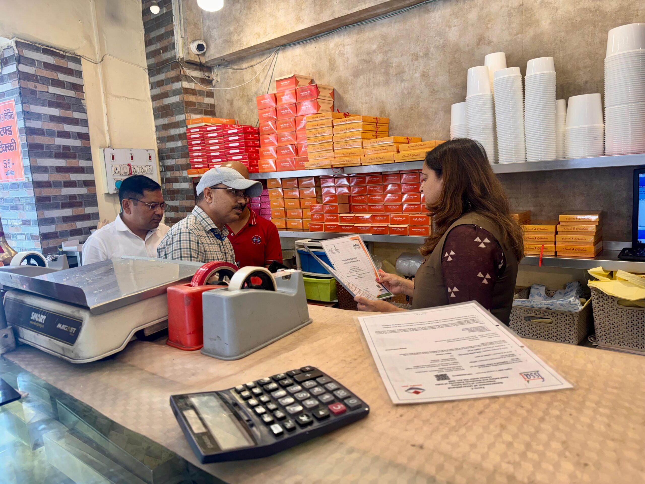 ली गयी। बताया गया कि उनके यहां सिर्फ मिठाईयों का विक्रम होता है और टिक्की का निर्माण वे अपने ही शीप में करते हैं। लॉईसेन्स की जांच की गयी जो मानकों के अनुरूप पाया गया। अंत में निरीक्षण टीम द्वारा मलाई चमचम मिठाई को जांच हेतु लिया गया और सफाई/हाइजीन हेतु कुछ आवश्यक दिशा-निर्देश दिये गए तथा त्यौहारी सीजन में अधिक सावधानी रखने के निर्देश दिये गए।