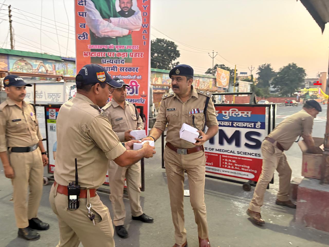 पर्व के अवसर पर आमजन की सुरक्षार्थ ड्यूटीरत पुलिसकर्मियों के बीच पहुंचकर किया उनका उत्साहवर्धन