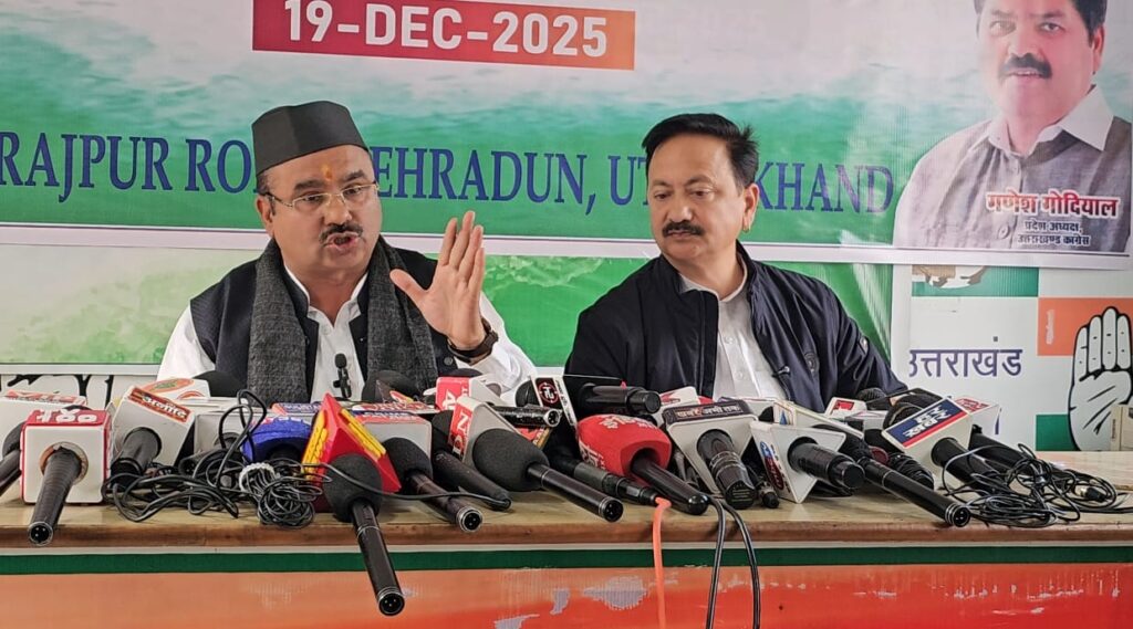 देहरादून | प्रदेश कांग्रेस कार्यालय राजीव भवन में आज राष्ट्रीय प्रवक्ता आलोक शर्मा एवं पूर्व प्रदेश अध्यक्ष व सीडब्ल्यूसी सदस्य करन माहरा ने संयुक्त प्रेस वार्ता कर केंद्र की मोदी सरकार पर मनरेगा को समाप्त करने और लोकतांत्रिक संस्थाओं के दुरुपयोग का गंभीर आरोप लगाया।