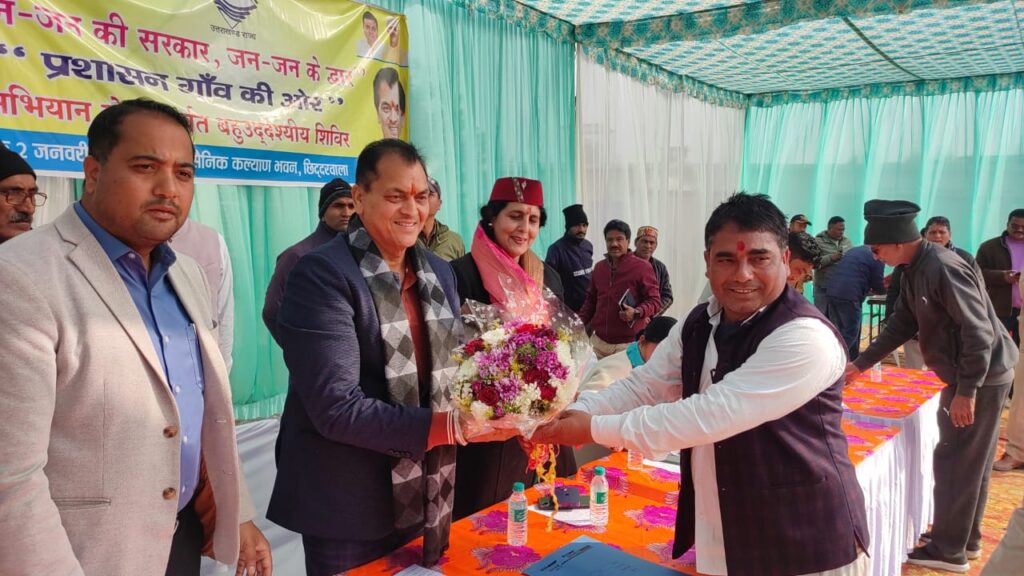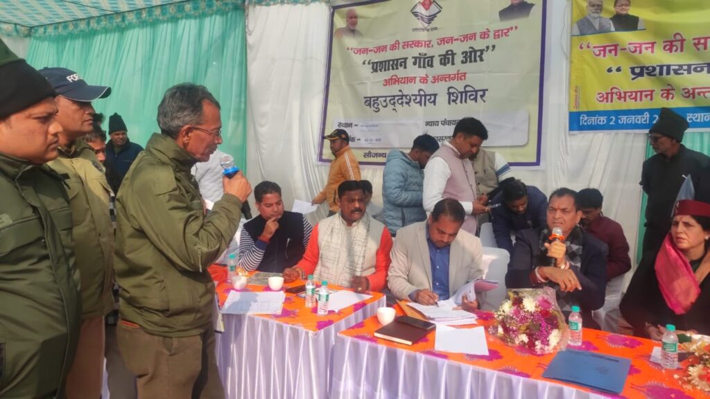 “जन-जन की सरकार, जन-जन के द्वार” अभियान के अंतर्गत शुक्रवार को न्याय पंचायत छिद्दरवाला स्थित सैनिक कल्याण भवन में उप जिलाधिकारी योगेश मेहरा की अध्यक्षता में वृहद बहुउद्देशीय शिविर का आयोजन किया गया। शिविर का उद्देश्य ग्रामीणों को उनके गांव में ही सरकारी सेवाएं एवं योजनाओं का लाभ उपलब्ध कराना रहा।