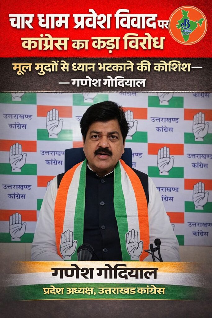 उत्तराखंड कांग्रेस के अध्यक्ष गणेश गोदियाल ने हरिद्वार के गंगा घाटों पर ‘गैर-हिंदुओं का प्रवेश वर्जित’ बोर्ड लगाए जाने और बद्रीनाथ–केदारनाथ मंदिर समिति से जुड़े हालिया बयानों पर कड़ा ऐतराज जताया है। उन्होंने चार धामों में गैर-हिंदुओं के प्रवेश पर रोक की चर्चाओं को राज्य के मूलभूत मुद्दों से जनता का ध्यान भटकाने का हथकंडा करार दिया।